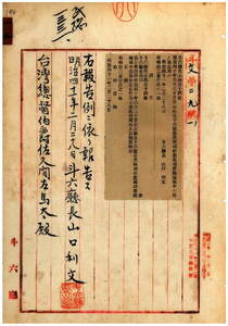 一五 第五四号 明治四〇年六月三〇日斗六庁告示第五六号公共埤圳新鹿場圳灌漑地域中布嶼堡二崙仔庄ノ一部ヲ追加ノ件