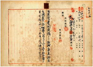 二四 明治三八年六月府令第四三号台湾土地登記規則施行規則第四条中ノ改正ニ関シ台北地方法院新竹出張所上席判官小野隆太郎・台北地方法院宜蘭出張所上席判官柳原右助・台南地方法院嘉義出張所上席判官松岡十次郎・台北地方法院台中出張所上席判官望月恒造・台北地方法院長安井勝次・台南地方法院長桜庭棠陰・覆審法院長石井常英ヨリ建議ニ付キ改正案ヲ立案シタルモ廃案ノ件