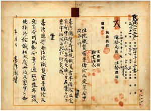 法院職員官等俸給及定員令中改正竝同院書記長特別任用令制定ノ儀稟申(內務大臣)