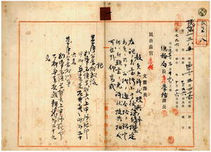 一 台湾総督府国語学校長本荘太一郎ノ上申ニ依リ明治四一年三月二六日付ヲ以テ台湾総督府国語学校師範部甲科ヲ卒業シタル石井喜之助・井上徳弥・小山戒三・落合雄一・渡部佐四郎・鷲野昇・勝又珉造・加藤春城・神尾豊松・神原長太郎・吉田作太郎・吉野秀公・中島清栄・武藤源吾・有働茂・栗田確・古谷力三郎・芦田安久蔵・鮫島春樹・宮内八郎・宮本貞三・庄司徳太郎・秦泉寺昇・江口種夫・平原清・平石義人・百瀬正戸へ台湾公学校教諭免許状ヲ授与シ、同ジク同日付ヲ以テ台湾総督府国語学校師範部乙科ヲ卒業シタル趙朝龍・陳元龍・張寿・陳金典・陳