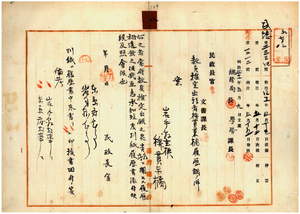 八 台北第一尋常高等小学校教務嘱託岩手県士族ノ稗貫東橘ヨリ出願ノ台湾総督府教員無試験検定ニ対シ台北庁長加藤尚志ノ進達及ヒ教員検定委員会ノ合格ヲ以テ同人ヘ小学校本科正教員ノ免許状ヲ授与スルノ件