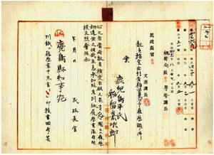 四 南投公学校教務嘱託稲留嘉次郎ヘ小学校教員無試験検定ノ上尋常小学校本科正教員免許状授与ノ件