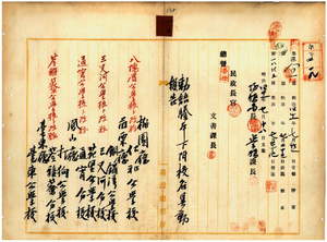 一〇 勅語謄本下附校ニ付キ桃園庁仕和公学校ヲ八塊厝公学校ニ、苗栗庁銅鑼湾公学校三叉河分校ヲ三叉河公学校ニ、苗栗庁苑里公学校通霄分校ヲ通霄公学校ニ、鳳山庁打狗公学校苓雅リョ分校ヲ令雅リョ公学校ニ、台東庁台東公学校成広澳分校ヲ成広澳公学校ニ内務大臣宛校名異動報告ノ件