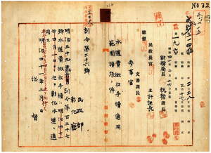 二〇 明治三九年六月訓令第一三七号水道費徴収手続ハ彰化水道ニ適用ノ件(訓令第二六号)