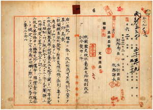 四 淡水税関長兼安平税関長岩政憲三ノ内申ニ依リ税関監吏被服属具支給規則制定並ニ明治三〇年一〇月訓令第一三〇号台湾総督府税関監吏補被服属具支給規則廃止ノ件(訓令第四三号)