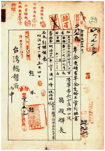 一九 陸軍歩兵少佐鵜殿輝長ノ年金受領者年金支給主管ヲ熊本県ヨリ、台北衛戌病院陸軍二等軍医岡本貫一ノ金鵄勲章年金主管ヲ群馬県ヨリ夫々台湾総督府ヘ引継ノ件