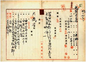 二〇 陸軍憲兵上等兵富田松五郎ノ陸軍恩給主管ヲ愛知県ヨリ台湾総督府ヘ引継並ニ大蔵省ヘ主管異動通知ノ件