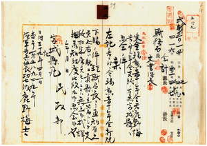 二五 陸軍歩兵伍長鹿野梅吉ノ金鵄勲章年金主管ヲ宮城県ヨリ台湾総督府ヘ転換並ニ宮城県・大蔵省・賞勲局ヘ異動通知ノ件