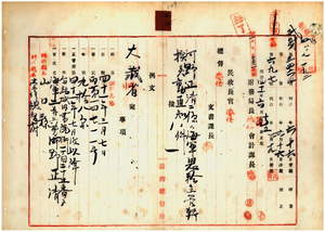 三二 海軍二等兵曹河野正清ノ海軍恩給主管ヲ山口県ヨリ台湾総督府ヘ引継並ニ大蔵省ヘ主管転換並異動通知ノ件