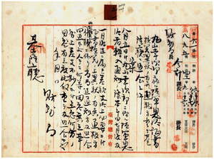 五一 陸軍憲兵上等兵丸山幸次郎ノ陸軍恩給主管ヲ山梨県ヨリ台湾総督府ヘ引継並ニ大蔵省ヘ主管転換並異動通知ノ件