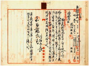 八一 嘉義庁長北原種忠ヨリ稟申ノ同庁大目根堡鹿蔴産庄所在第一地方費区所属地ノ内道路敷地トシテ国庫無償譲与ノ儀ヲ認可シ同庁長ヘ通達ノ件