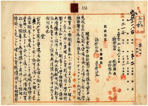 一二 学租財団管理者民政長官ノ稟申ニ依リ台北庁芝蘭三堡滬尾街土名烽火街アシュトンノ永代借地権及ヒ室屋ヲ買収ノ上国庫業地トシ学祖財団ヘ無償譲与ニ付キ台北庁長ヘ通牒ノ件