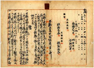 六 同上照会(財税第六九二号)ニ対スル宜蘭庁長中田直温ノ回答ニ依リ宜蘭庁本城堡宜蘭街土名巽門ノ学祖財団所属敷地建物及ヒ祠廟敷地ヲ孔子廟ヘ無償譲与方認可並ニ孔子廟管理者宜蘭区街長村沢蔡ヘ引渡ノ件[五も見よ]