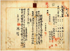八 蕃薯リョ庁長石橋亨ノ稟申ニ依リ開墾地タル王生外一七名[未記載]ノ蕃薯リョ庁楠梓仙渓東里土暇湾庄ノ田ト生熊乙吉ノ蕃薯リョ庁羅漢街外門里円溜稼庄ノ畑ヲ稟申通リ開墾地土地台帳登録方認可ノ件(指令第三二九六号)