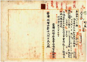 一九 台湾総督府専売局長宮尾舜治ヨリ新竹庁竹北一堡楊リョ庄土名南油車港ノ塩田業主ヲ同庁同堡虎仔山庄在住ノ楊歩ヨリ楊家走ニ訂正方報告ノ件