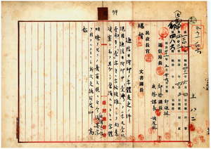 六 通信日附印ノ「臺灣」ノ二字及ヒ「臺北」、「臺南」等ノ「臺」字等ハ字格複雑ニ付キ「台湾」又ハ「台」ノ字ニ字体変更ノ件