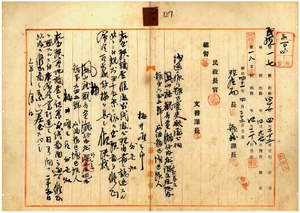 一〇 栂井唯三郎ト広瀬貞五郎ヘ鳳山庁管内ノ石油鉱増区願許可ノ件(指令第二二三三号)