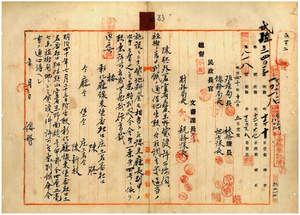 七 彰化庁線東堡番社口庄ノ陳胚・陳新枝へ想思樹造林ノ為メ同庁同堡同庄ノ官有森林原野有償貸渡許可ノ件(指令第四三九六号)