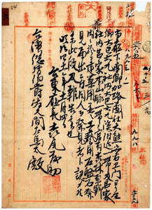 六 台東庁南郷加路蘭社ノ大熊安右衛門ヨリ同庁南郷大巴六九社内及ヒ同庁同郷呂家社内ノ官有森林原野ニ於テ建設用並ニ工芸用石盤石発見届出ニ付キ同人ヲ発見者ト認定シタル旨台東庁長森尾茂助ヨリ報告ノ件