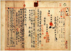 二〇 臨時台湾工事部官制第十条ニ依リ基隆庁基隆堡仙洞圧ニ臨時台湾工事部基隆支部ヲ、及ヒ鳳山庁興隆内里打狗哨船頭街ニ同部打狗支部ヲ設置ノ件(告示第九〇号)