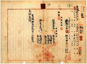 二四 第七号 明治三七年一二月宜蘭庁令第一七号米穀検査規則第六条第二項中ノ第五号様式改正ノ件(1908-10-24~日付エラー);基隆庁告示第九六号外三四件[未記載]供閲ノ件(1908-11-18~1908-12-18)