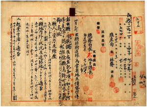 二八 台北庁擺接堡枋橋街林嵩寿ヨリ出願ノ樟樹造林ノ為メ桃園庁海山堡ノ三層庄ト新渓洲庄ノ官有原野無償貸付願許可ノ件(指令第二七四〇号)
