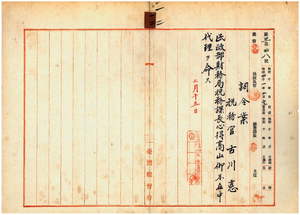 一二 台湾総督府民政部財務局長代理峡謙斉ノ内申ニ依リ台湾総督府税務官古川悳ニ台湾総督府民政部財務局税務課長心得高山仰不在中代理ヲ命ス