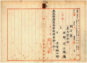 一三 台湾総督府民政部殖産局長宮尾舜治ノ具申ニ依リ台湾総督府民政部殖産局農商課勤務技師ノ川上瀧弥ト芳賀鍬五郎ニ台湾総督府民政部殖産局林務課兼務ヲ命ス