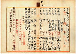 二二 第四回統計講習会長警視総長大島久満次ノ内申ニ依リ台湾総督府技師水科七三郎・台湾総督府事務官立川連・台湾総督秘書官斎藤参吉・臨時台湾戸口調査部属ノ竹村諫ト浜田文之進ト福田真鷹・台湾総督府属神谷由道・台湾総督府嘱託竹田唯四郎・台湾総督府雇菊池義郎ニ第四回統計講習会事務格別勉励ニ付キ慰労金ヲ給ス