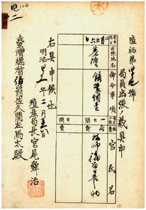 四二 台湾総督府民政部殖産局長宮尾舜治ノ具申ニ依リ台湾総督府技師福留喜之助ヲ鉱業調査ノ為メ基隆ヘ出張ヲ命ス