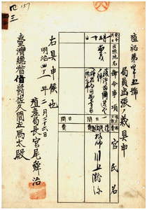 四三 台湾総督府民政部殖産局長宮尾舜治ノ具申ニ依リ糖務局用務ニテ台南滞在中ノ台湾総督府技師川上瀧弥ノ護謨苗圃選定ノ為メ嘉義ヘ出張ヲ命ス