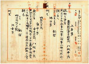 一四 台湾総督府中学校教諭八坂半六ハ疾病ニ罹リ職ニ堪ヘサル旨ヲ以テ辞職願ニ依リ本官ヲ免シ事務格別勉励ニ付キ一時金ヲ賞与ス
