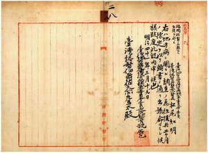 二八 台湾地方病及伝染病調査委員会委員台湾総督府医院医長松尾知明ニ地方病調査ノ為メ福岡・佐賀ノ両県下出張ヲ命シ度キ旨台湾地方病及伝染病調査委員會委員長民政長官祝辰巳ヨリ内申ノ件