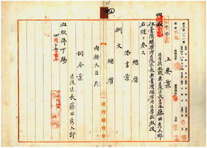 四 台北医院長長野純蔵ト台湾総督府医学校長高木友枝ノ内申ニ依リ台湾総督府医学校教授兼医院医長藤田秀太郎ヲ台湾総督府医院医長兼台湾総督府医学校教授ニ任命ノ件