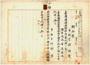 台湾総督府民政部殖産局長宮尾舜治ニ台湾総督府民政部財務局長小林丑三郎不在中代理ヲ命シ台湾総督府事務官阿部滂ニ台湾総督府民政部財務局主計課長兼会計課長峡謙斉不在中ノ代理ヲ命ス[一三に関係文書あり]