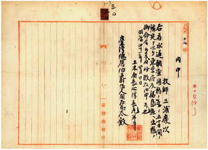 三〇 台湾総督府民政部土木局長心得長尾半平ヨリ台湾総督府技師三浦慶次ニ水道調査用務ノ為メ東京府及福島県ヘ出張ヲ命スル内申ノ件