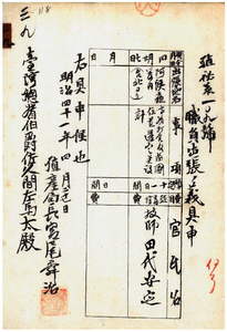 三九 台湾総督府民政部殖産局長宮尾舜治ノ具申ニ依リ台湾総督府技師田代安定ニ事務打合及ヒ苗圃位置選定並設計ノ為メ台北ヨリ阿緱庁管内ヘ出張ヲ命ス