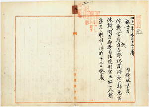 二 休職中ノ台湾総督府事務官兼警視図師庄一郎ヨリ代議士候補ニ推サレタル為メ免官ヲ願出タルニ依リ本官並ニ兼官ヲ免シタル旨通知ノ件[三好一八の転任辞令発表に関する文書あり]