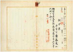四 台湾総督府参事官斎藤愛二ニ台湾総督官房文書課長斎藤参吉不在中ノ代理ヲ命ス