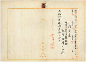 一九 台湾総督府民政部通信局長鹿子木小五郎ノ内申ニ依リ通信局通信事務練習所統計ニ関スル教授方ヲ嘱託サス為メ台湾総督官房文書課勤務台湾総督府技師水科七三郎ニ台湾総督府民政部通信局兼務ヲ命ス