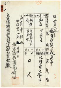 三一 台湾総督府民政部殖産局長宮尾舜治ノ具申ニ依リ台湾総督府技師藤江勝太郎ニ事務打合ノ為メ出府ヲ命シ次テ茶樹栽培事務監督ノ為メ銅鑼圏ヘ出張ヲ命ス