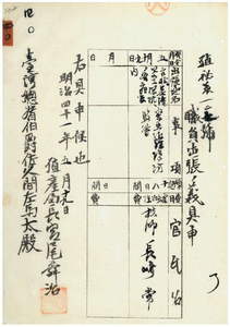 四〇 台湾総督府民政部殖産局長宮尾舜治ノ具申ニ依リ台湾総督府技師長崎常ニ害虫駆除予防監督ノ為メ台北・基隆・宜蘭・深坑ノ各庁管内ヘ出張ヲ命ス