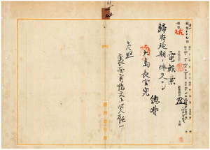 一五 日本大博覧会評議委員会ヘ出席ノ為メ帰府延期ヲ願出タル台湾総督府民政長官大島久満次ヘ許可スル旨通知ノ件[日本大博覧会評議員任命に関する大島久満次民政長官電報あり]