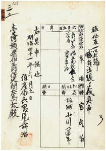 三五 台湾総督府民政部殖産局長宮尾舜治ノ具申ニ依リ台湾総督府技師小川運平ニ稲立毛競作会審査ノ為メ彰化庁管内ヘ出張ヲ命ス