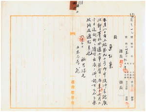技師高橋辰次郎臺北廳下ヘ隨時出張認可ニ付通知