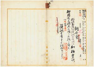 五〇 臨時台湾旧慣調査会嘱託加福豊次法院検察官ニ法制取調ノ為メ欧米各国ヘノ出張ヲ命ス(1908-05-31~1908-06-25);台湾総督府秘書官ヨリ内務秘書官ニ対シ欧州派遣稟申中ノ臨時台湾旧慣調査会委員眇田熊右衛門ヲ本年内ニ帰朝セシムル必要アルニ依リ至急上京セシムル様取扱方依頼ノ件(1908-05-31 ~-06-18)