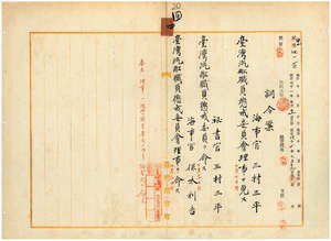 四 台湾汽船職員懲戒委員長鹿子木小五郎ノ内申ニ依リ台湾総督府海事官三村三平ノ台湾汽船職員懲戒委員会理事ヲ免シ(七月七日付)、台湾総督府秘書官三村三平ニ台湾汽船職員懲戒委員ヲ命シ(七月一一日付)、台湾総督府海事官保木利吉ニ台湾汽船職員懲戒委員会理事ヲ命ス(七月一一日付)