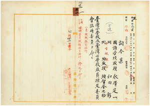 三一 台湾総督府民政部総務局長代理鹿子木小五郎ノ内申ニ依リ台湾総督府国語学校教授ノ永沢定一・和田彰ト台湾総督府中学校教諭須賀金之助ニ台湾小学校及ヒ台湾公学校教員検定委員会臨時委員ヲ命ス