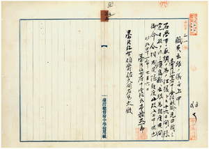三五 台湾総督府中学校長本荘太一郎ヨリ台湾総督府中学校教諭元田脩三ヲ学事取調ノ為メ広島県ヘ出張サセルニ付キ上申ノ件