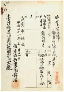 三八 台湾総督府民政部殖産局長宮尾舜治ヨリ台湾総督府技師福留喜之助ニ鉱物調査ノ為メ桃園庁管内ヘ出張サセルニ付キ具申ノ件